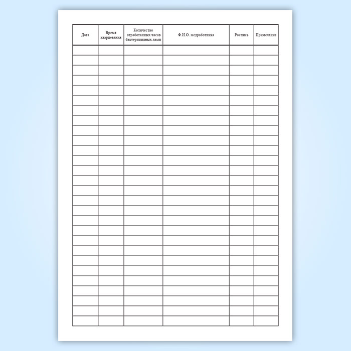 Журнал регистрации и контроля работы бактерицидной лампы в Ульяновске купить