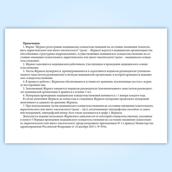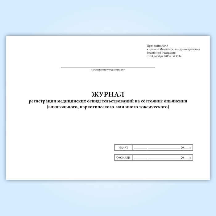 Журнал регистрации медицинских освидетельствований на состояние опьянения (алкогольного, наркотического или иного токсического) в Ульяновске купить