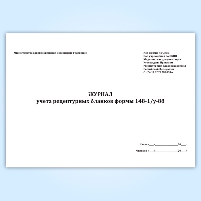 Журнал учета рецептурных бланков формы 148-1/у-88 (новый) (Приказ Минздрава России от 24.11.2021 N 1094н) в Ульяновске купить