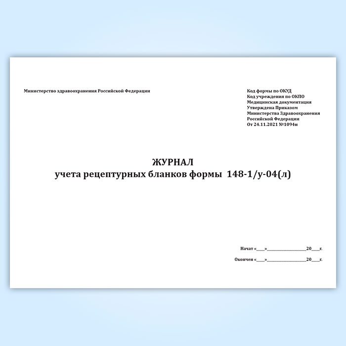 Журнал учета рецептурных бланков формы 148-1/у-04(л) (новый) (Приказ Минздрава России от 24.11.2021 N 1094н) в Ульяновске купить