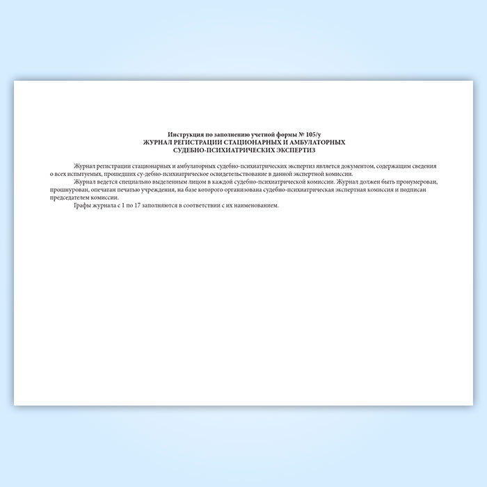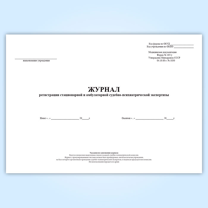 Журнал регистрации стационарной и амбулаторной судебно-психиатрической экспертизы (форма 105/у) в Ульяновске купить