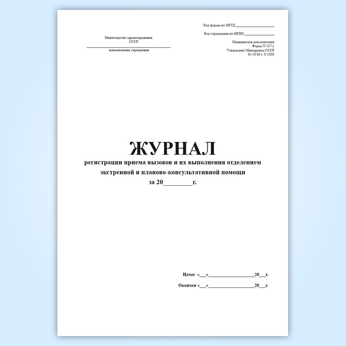 Журнал регистрации приема вызовов и их выполнения отделением экстренной и планово-консультативной помощи (форма 117/у) в Ульяновске купить