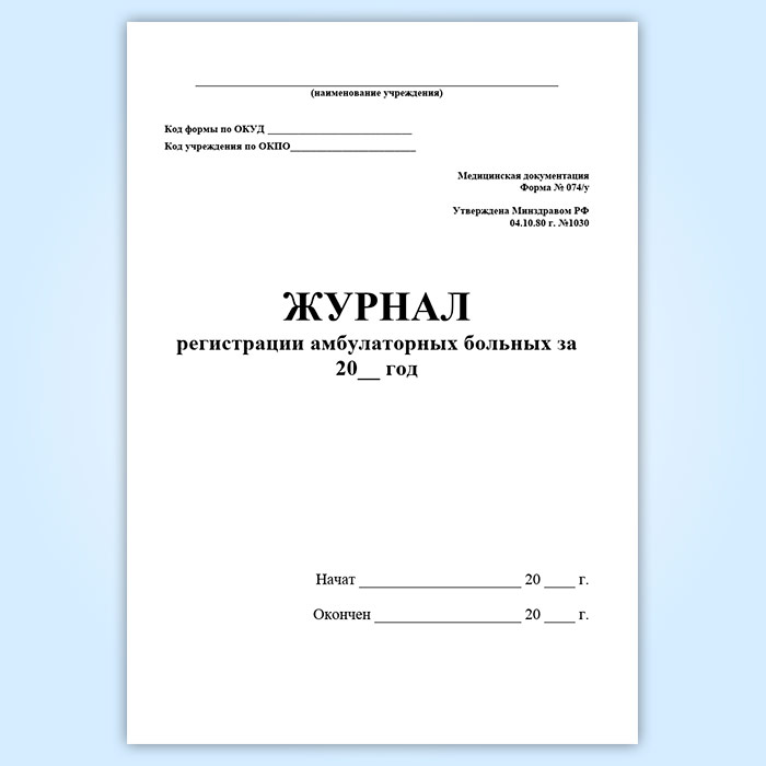 Журнал регистрации амбулаторных больных (форма 074/у) в Ульяновске купить