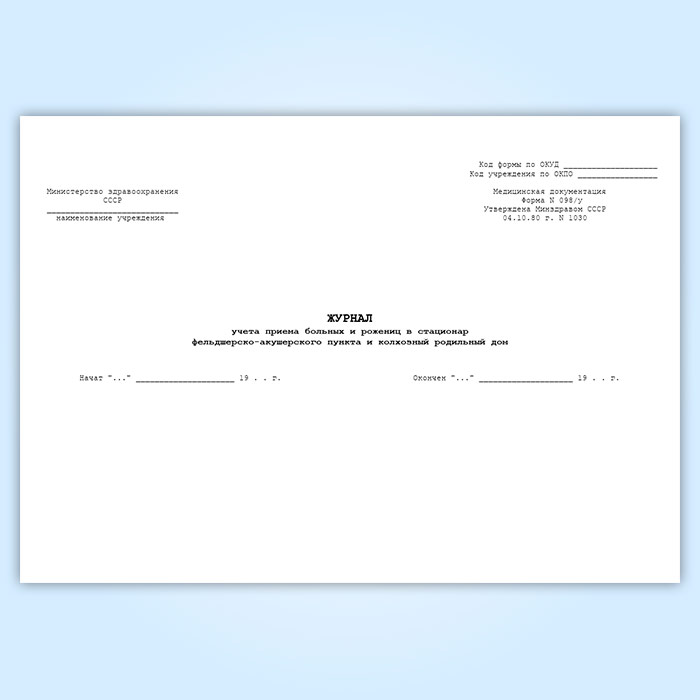 Журнал учета приема больных и рожениц в стационар фельдшерско-акушерского пункта, колхозного родильного дома (форма 098/у) в Ульяновске купить