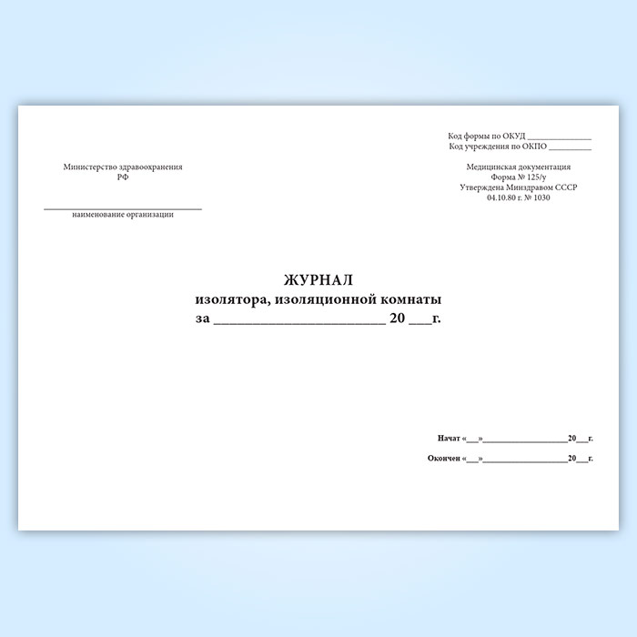 Журнал изолятора, изоляционной комнаты (форма 125/у) в Ульяновске купить