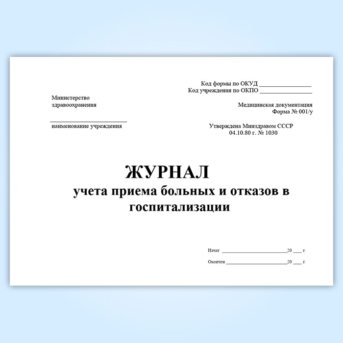 Журнал учета приема больных и отказов в госпитализации (форма 001/у) в Ульяновске купить