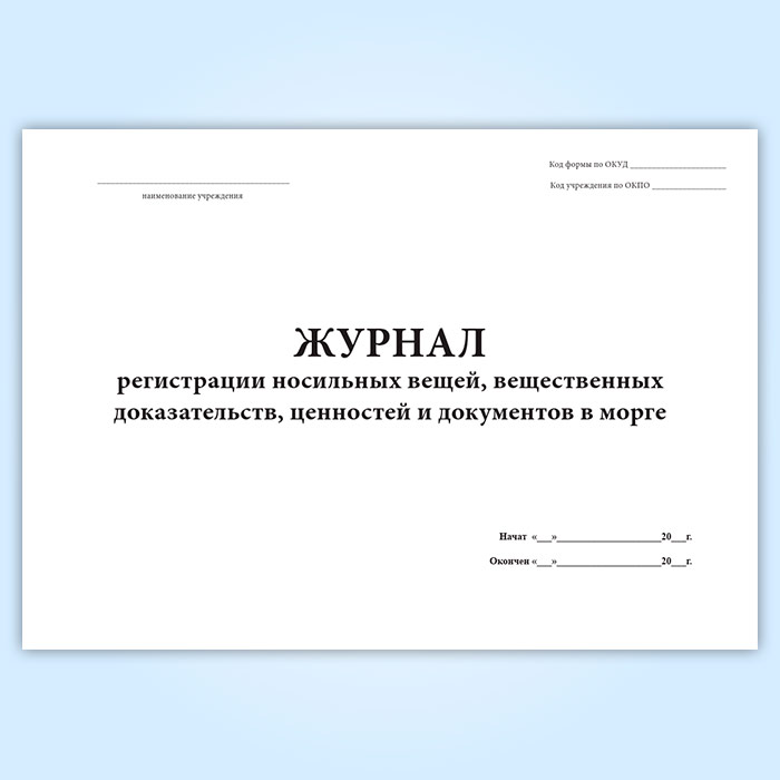 Журнал регистрации носильных вещей, вещественных доказательств, ценностей и документов в морге (форма 191/у) в Ульяновске купить