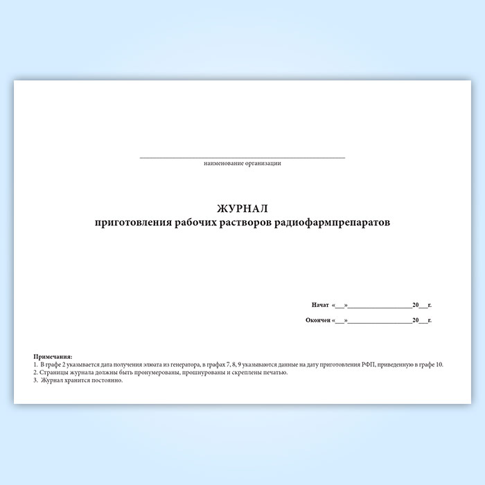 Журнал приготовления рабочих растворов радиофармпрепаратов в Ульяновске купить