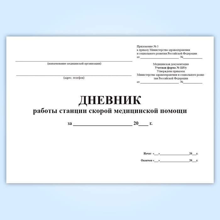 Дневник работы станции скорой медицинской помощи (форма 115/у) в Ульяновске купить