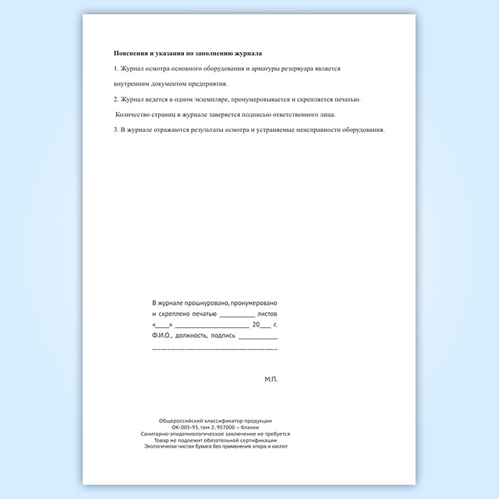 Журнал осмотра основного оборудования и арматуры резервуара (нефтепродукты) в Ульяновске купить