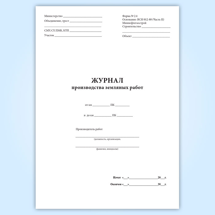 Журнал производства земляных работ (форма 2.4) (трубопроводы) в Ульяновске купить