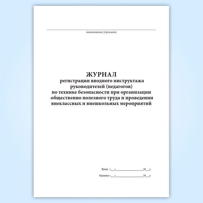 Журнал регистрации вводного инструктажа руководителей (педагогов) по технике безопасности при организации общественно полезного труда и проведении внеклассных и внешкольных мероприятий в Ульяновске купить