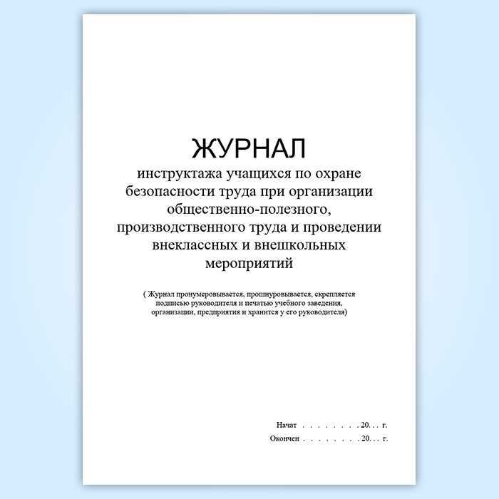 Журнал инструктажа учащихся по охране безопасности труда при организации общественно-полезного,производственного труда и проведении внеклассных и внешкольных мероприятий в Ульяновске купить
