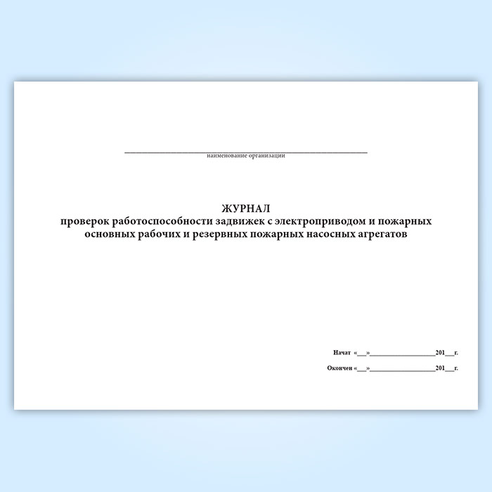 Журнал проверок работоспособности задвижек с электроприводом и пожарных основных рабочих и резервных пожарных насосных агрегатов в Ульяновске купить