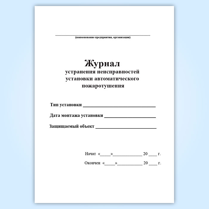 Журнал устранения неисправностей установки автоматического пожаротушения в Ульяновске купить