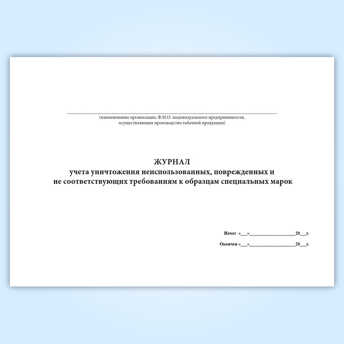 Журнал учета уничтожения неиспользованных, поврежденных и не соответствующих требованиям к образцам специальных марок в Ульяновске купить