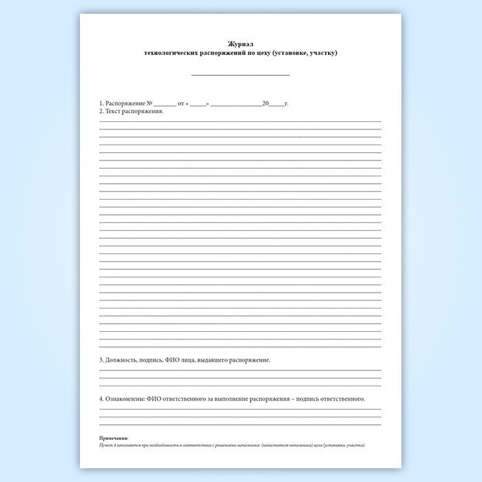 Журнал технологических распоряжений по цеху (установке, участку) в Ульяновске купить