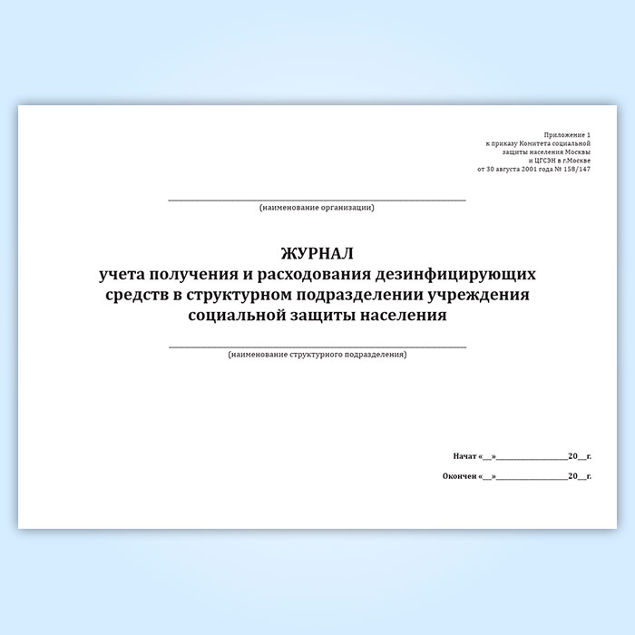 Журнал учета получения и расходования дезинфицирующих средств в структурном подразделении учреждения социальной защиты населения в Ульяновске купить