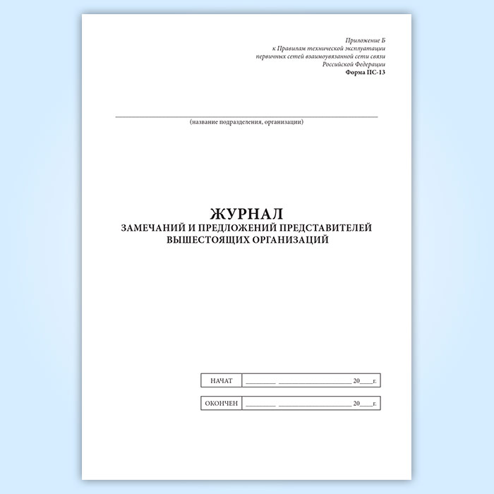 Журнал замечаний и предложений представителей вышестоящих организаций (форма ПС-13) в Ульяновске купить