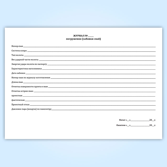 Журнал погружения (забивки свай) (форма 4.1) в Ульяновске купить