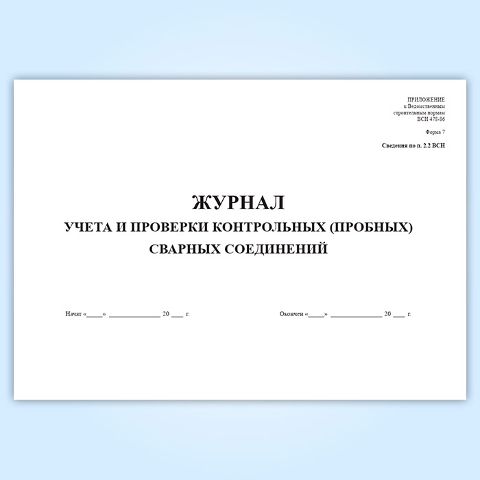 Журнал учета и проверки качества контрольных (пробных) сварных соединений (форма 7) в Ульяновске купить