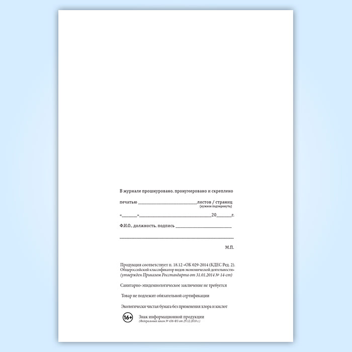 Вы получаете печатную продукцию прошнурованной и c местом для вашей печати в соответствии с действующими нормативными документами:
