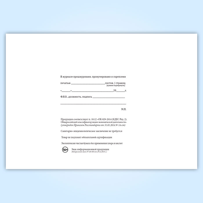 Вы получаете печатную продукцию прошнурованной и c местом для вашей печати в соответствии с действующими нормативными документами: