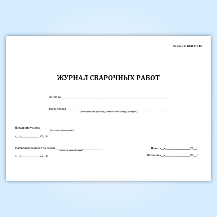 Журнал сварочных работ (ВСН 478-86) в Ульяновске купить