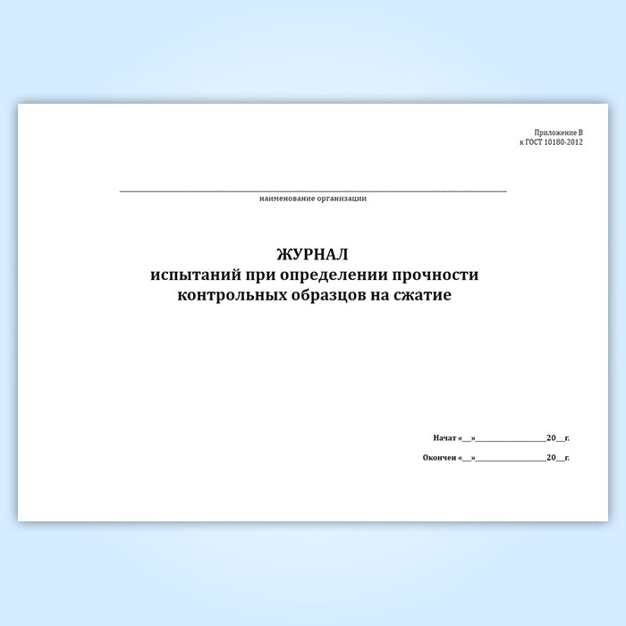 Журнал испытаний при определении прочности контрольных образцов на сжатие в Ульяновске купить