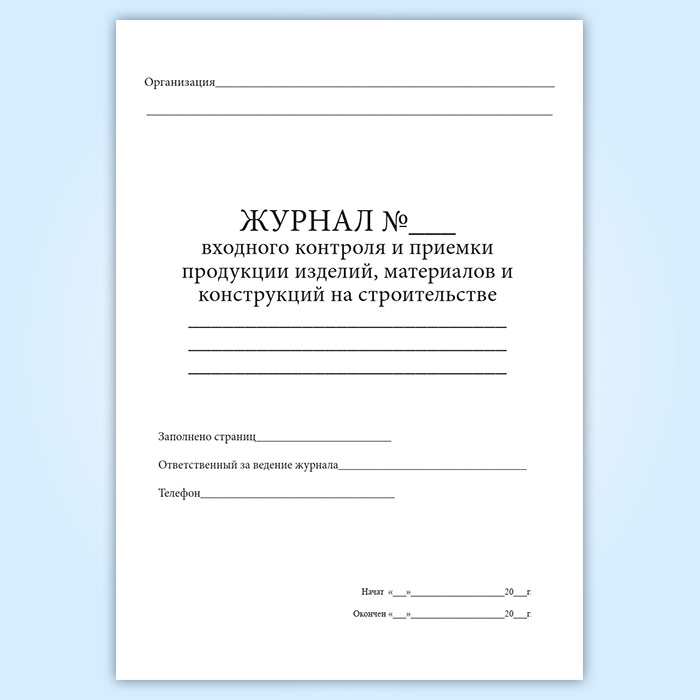 Журнал входного контроля и приемки продукции, изделий, материалов и конструкций на строительстве в Ульяновске купить
