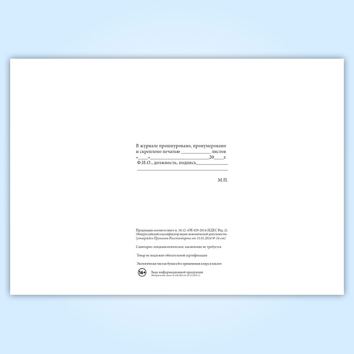 Вы получаете печатную продукцию прошнурованной и c местом для вашей печати в соответствии с действующими нормативными документами: