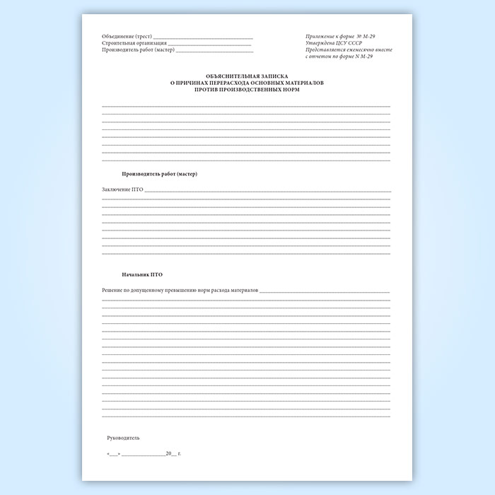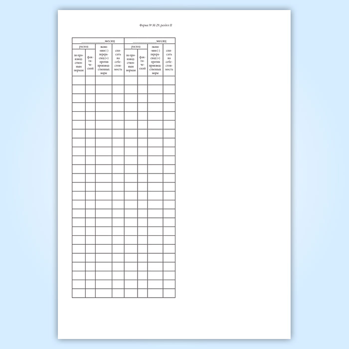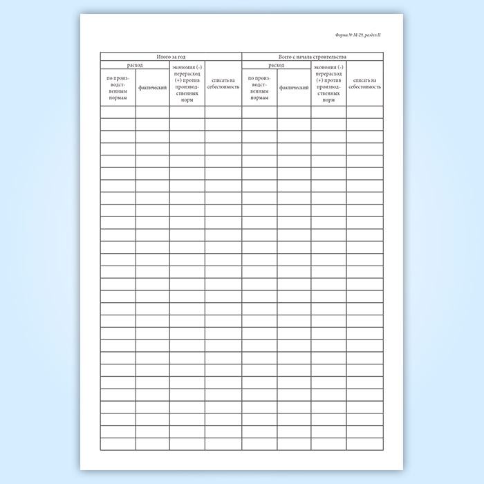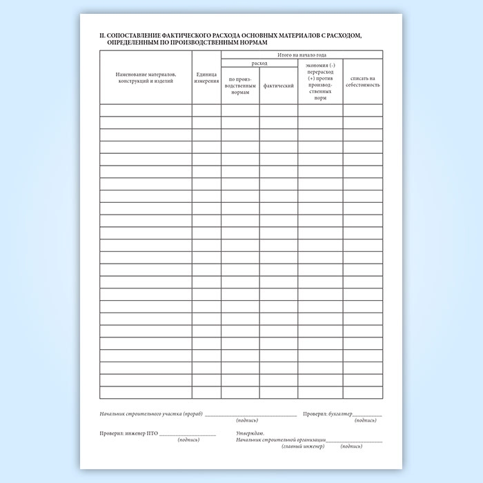 Отчет о расходе основных материалов в строительстве в сопоставлении с расходом, определенным по производственным нормам (форма М-29) в Ульяновске купить