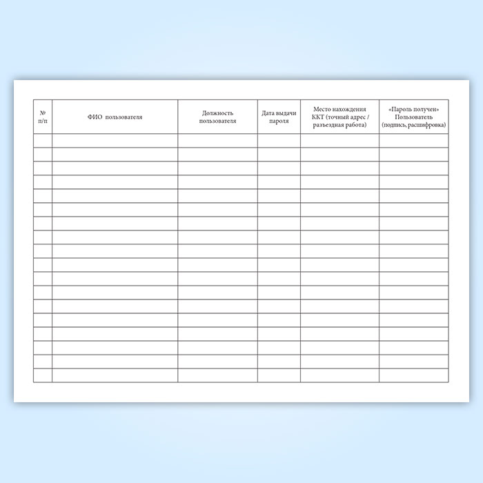 Журнал выдачи паролей для работы с контрольно-кассовой техникой (ККТ) в Ульяновске купить