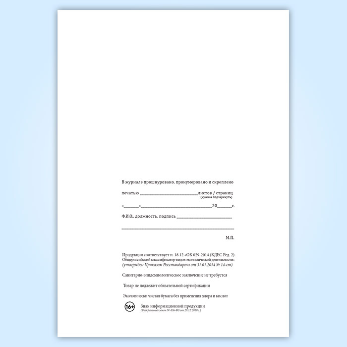Вы получаете печатную продукцию прошнурованной и c местом для вашей печати в соответствии с действующими нормативными документами: