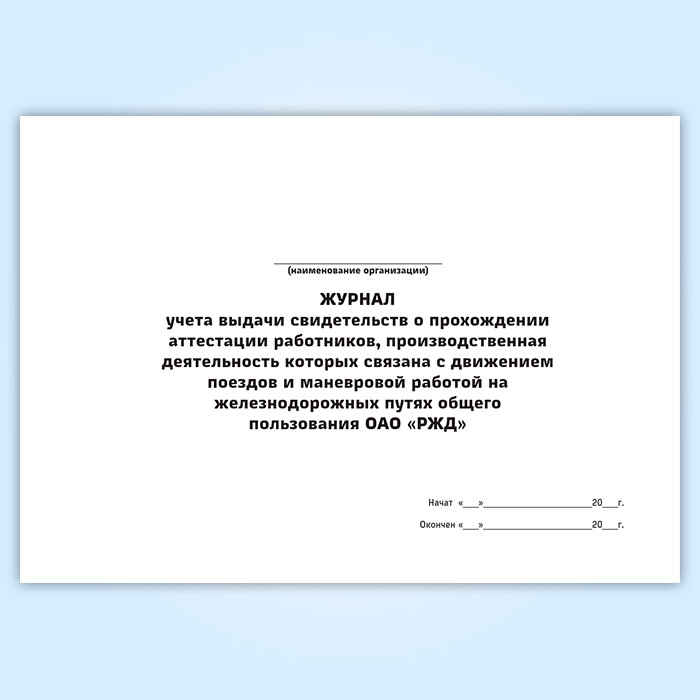 Журнал учета выдачи свидетельств о прохождении аттестации работников, производственная деятельность которых связана с движением поездов и маневровой работой на железнодорожных путях общего пользования ОАО «РЖД» в Ульяновске купить