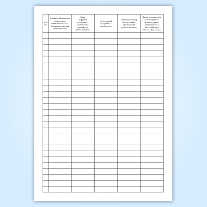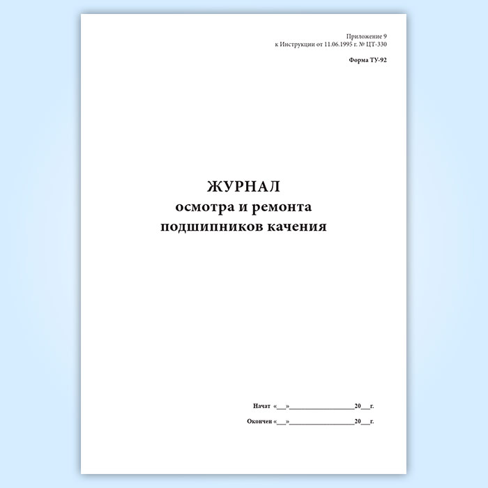 Журнал осмотра и ремонта подшипников качения (форма ТУ-92) в Ульяновске купить