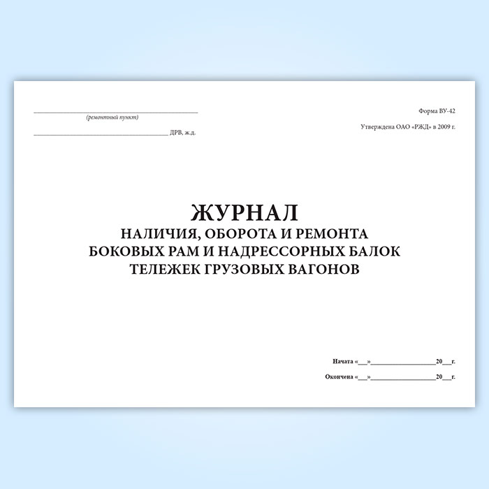Журнал учета наличия, оборот и ремонт боковых рам и надрессорных балок тележек грузовых вагонов (форма ВУ-42) в Ульяновске купить