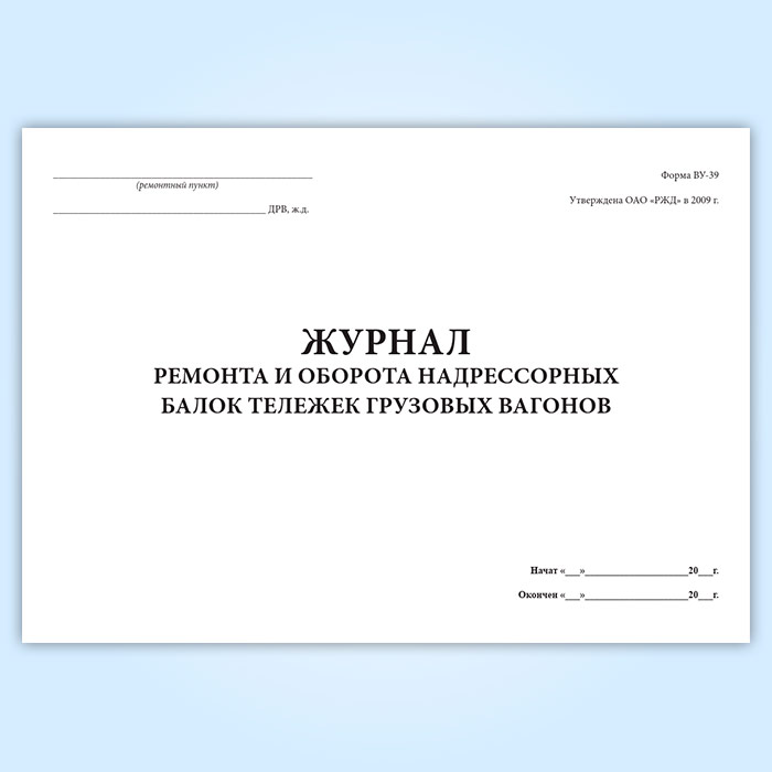 Журнал ремонта и оборота надрессорных балок тележек грузовых вагонов (форма ВУ-39) в Ульяновске купить
