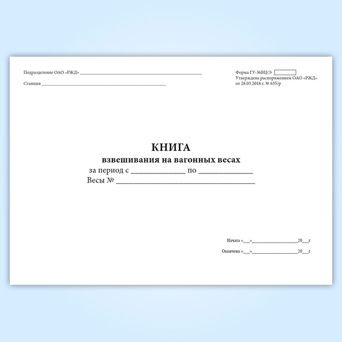 Книга взвешивания на вагонных весах (форма ГУ-36ВЦ/Э) в Ульяновске купить