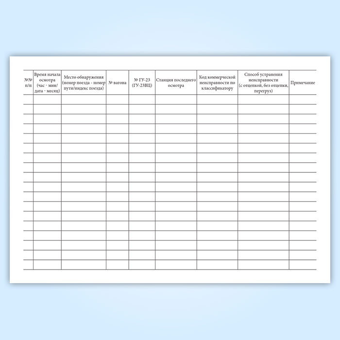 Книга регистрации коммерческих неисправностей вагонов в поездах в пунктах коммерческого осмотра (форма ГУ-98ВЦ) в Ульяновске купить