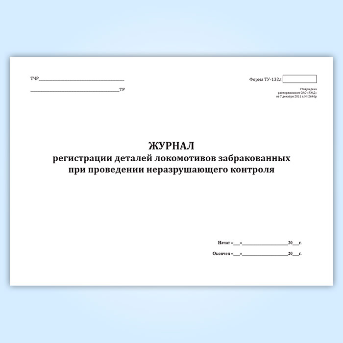 Журнал регистрации деталей локомотивов, забракованных при проведении неразрушающего контроля (форма ТУ-132л) в Ульяновске купить