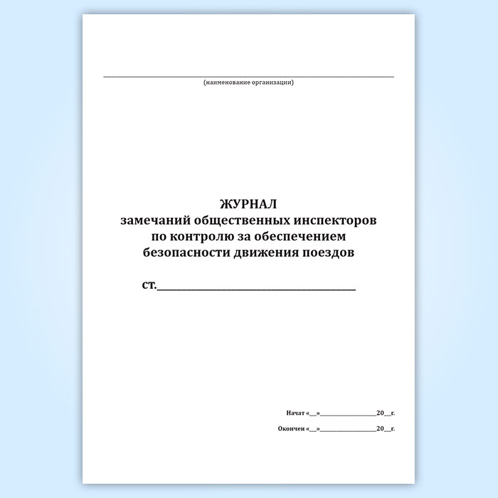 Журнал замечаний общественных инспекторов по контролю за обеспечением безопасности движения поездов в Ульяновске купить