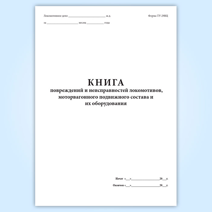 Книга повреждений и неисправностей локомотивов, моторвагонного подвижного состава и их оборудования (форма ТУ-29ВЦ) в Ульяновске купить