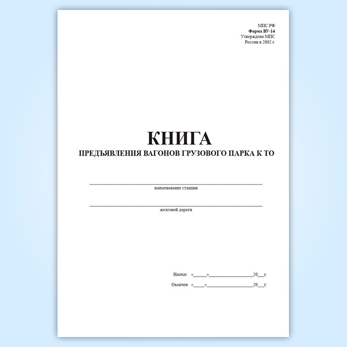 Книга предъявления вагонов грузового парка к ТО (форма ВУ-14) в Ульяновске купить