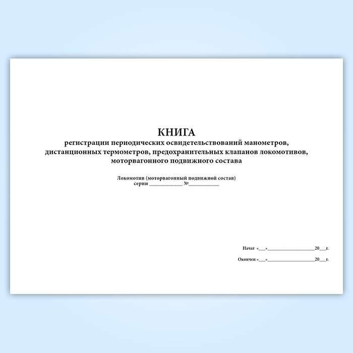 Книга регистрации периодических освидетельствований манометров, дистанционных термометров, предохранительных клапанов локомотивов, моторвагонного подвижного состава (форма ТКУ-8) в Ульяновске купить