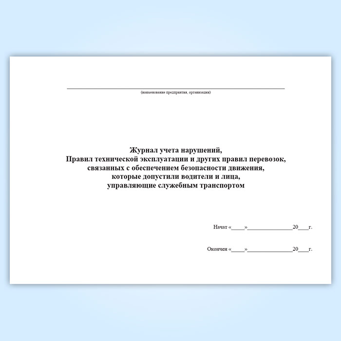 Журнал учета нарушений, правил технической эксплуатации и других правил перевозок, связанных с обеспечением безопасности движения, которые допустили водители и лица, управляющие служебным транспортом в Ульяновске купить