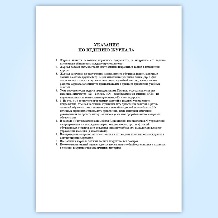 Журнал учета занятий по подготовке водителей транспортных средств категории «В» в Ульяновске купить
