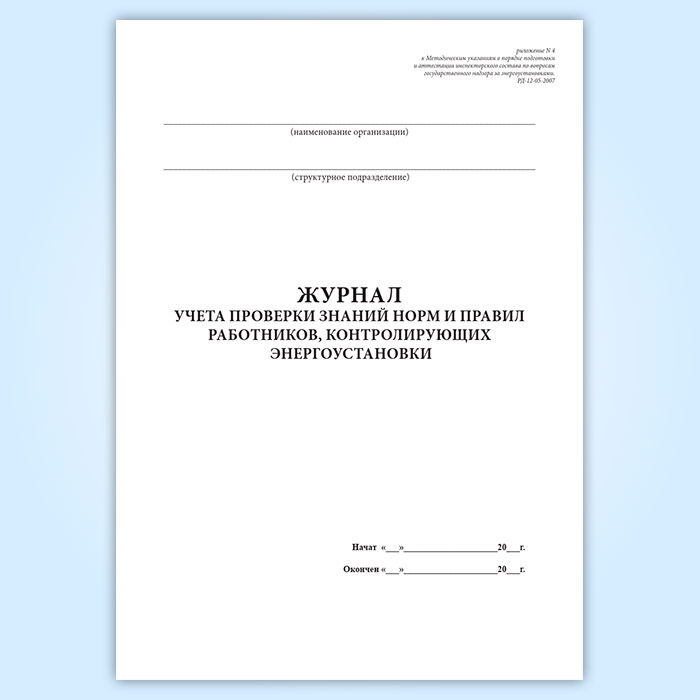Журнал учета проверки знаний норм и правил работников, контролирующих энергоустановки в Ульяновске купить