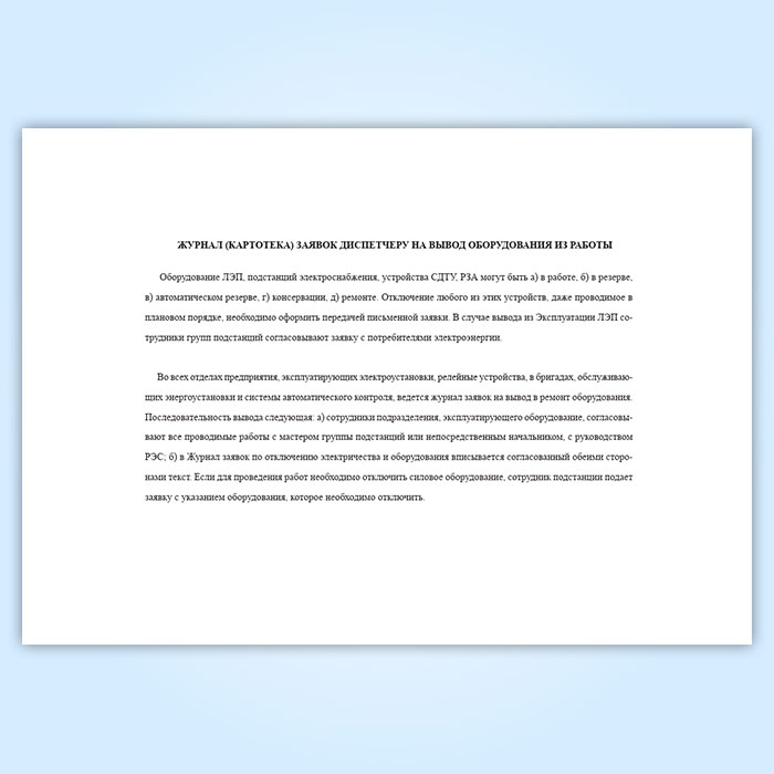 Журнал (картотека) заявок диспетчеру на вывод оборудования из работы в Ульяновске купить