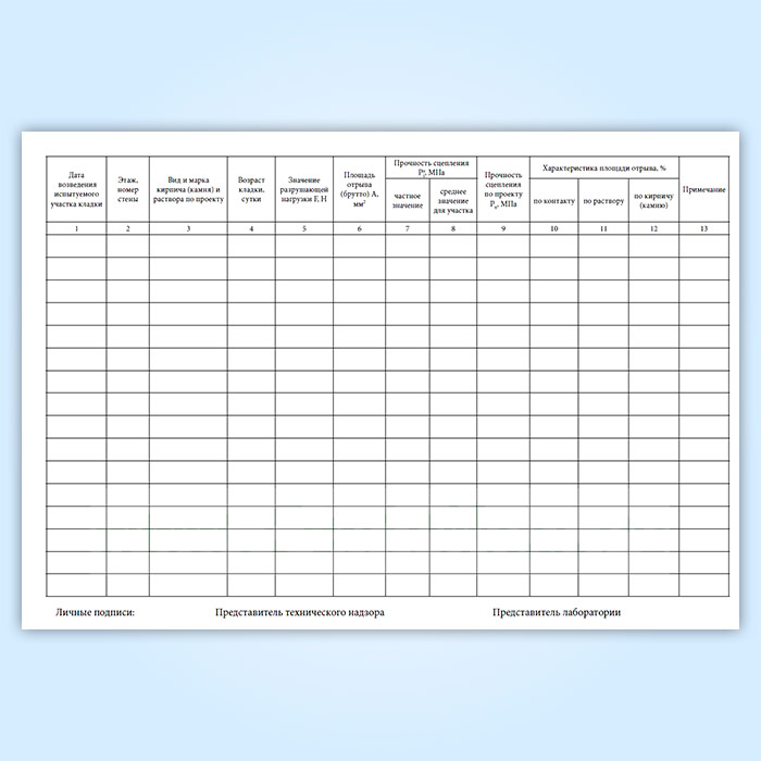 Журнал контрольных испытаний прочности сцепления в кладке на строительной площадке в Ульяновске купить